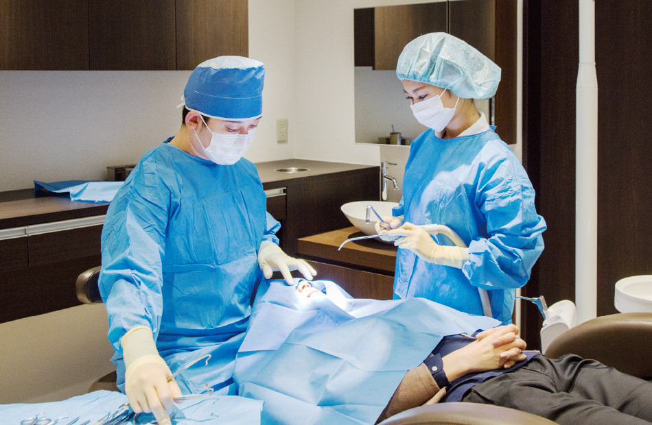 近年、歯科治療における静脈内鎮静法(セデーション)を導入する医院が増えていますが、当院ではそれをはるかに超える大学病院クラスの設備での全身麻酔による治療を受けていただくことができます。
