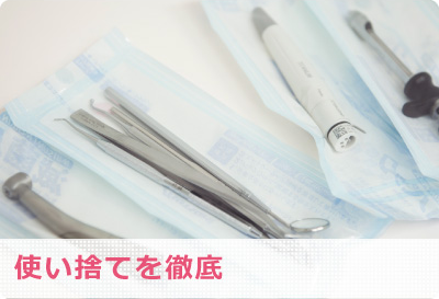 器具滅菌の徹底や積極的な使い捨て(ディスポーザブル)を行っています。