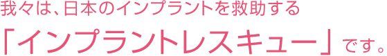当院はこの問題に正面から向き合い、解決し、日本のインプラント治療の正しい姿を啓蒙し、日本のインプラント治療業界を牽引するために設立いたしました。『日本のインプラント・歯周病をレスキューする』を合言葉に、院長をはじめ、歯科衛生士・歯科技工士が一丸となってこれからも1人でも多くの患者様のお悩みを解決に導きます。