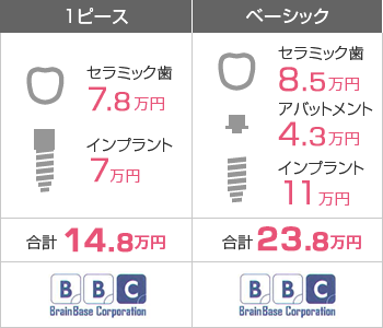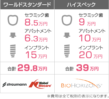 例えば、奥歯2本欠損の場合、ワールドスタンダードをお選び頂いた時の治療費は、